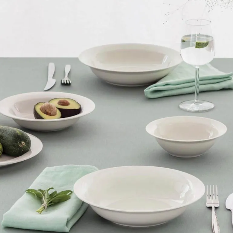 Arctica Pasta-/Salattallerken 24cm. Den sjenerøse, dype Arctica-tallerkenen er perfekt for pasta, salater og supper. Den tradisjonelle skålen er bred, noe som gjør det enkelt å øse suppe. Designet gjør det til en fornøyelse å nyte varm mat. Det hvite serviset består av flere ulike deler som kan brukes alene eller som en del av en mer dekorativ borddekking.