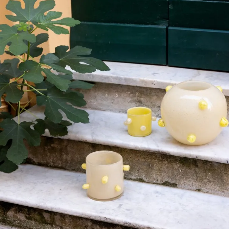 Arlo lysholder fra BYON er en sjarmerende og multifunksjonell interiørdetalj som forener kreativt design med praktisk bruk. Med en høyde på 10 cm og en fargekombinasjon av gul og beige, bringer den en subtil friskhet til ethvert rom. Bruk Arlo som vase, lysestake eller skål – mulighetene er mange, og den tilpasser seg lett til ulike interiørstiler.