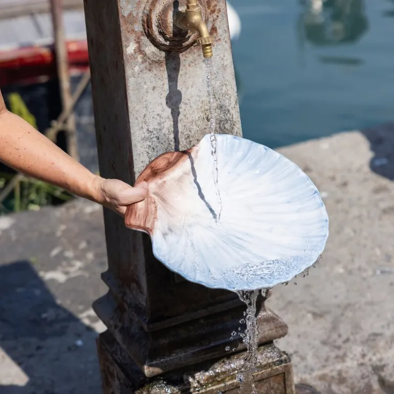 Armona serveringsfat fra BYON er et unikt og eksklusivt designobjekt, håndlaget av steintøy og nøye håndmalt i en lys blå nyanse. Med sitt delikate uttrykk og mål på 32 cm, kombinerer dette fatet praktisk bruk med kunstnerisk skjønnhet. Inspirert av havets skatter gir det en følelse av naturlig eleganse til ethvert bord eller interiør.