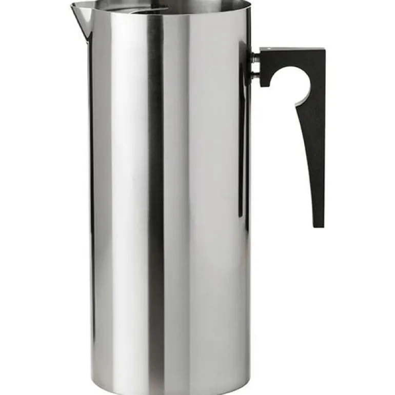 Den funksjonelle utformingen av denne sylinderformede kannen fra AJ gjør den praktisk både til daglig bruk og til spesielle anledninger. Kannen rommer 2 liter vann og har en praktisk isrist som gjør at isterningene blir igjen i kannen og dermed holder vannet kaldt. Det sorte håndtaket er behagelig å holde i, og har en optimal vinkel for helling. Den stilige vannkannen passer til enhver anledning.