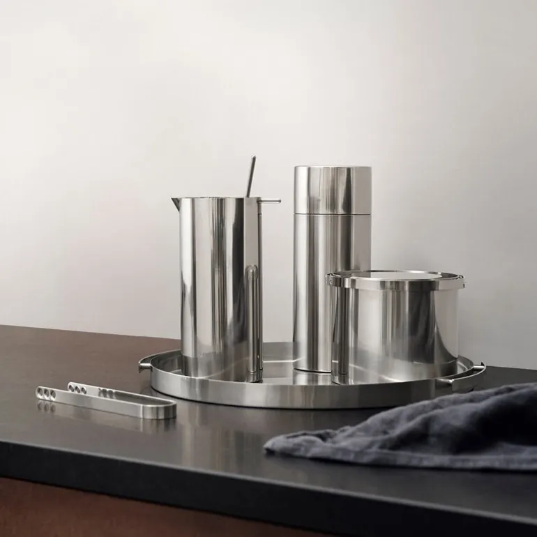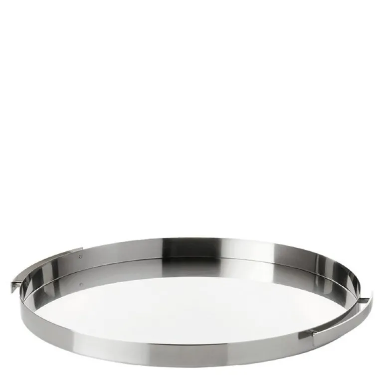Arne Jacobsen serveringsbrett på 33,5 cm i stål fra Stelton er et stilrent og funksjonelt tillegg til hjemmet. Som en del av den ikoniske Cylinda-serien, har brettet et minimalistisk design som passer inn i enhver setting, samtidig som det tilfører et subtilt dekorativt preg.