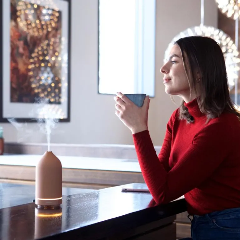 Fyll i vann og 20-25 dråper eterisk olje og skap en oase av velvære med et tastetrykk: