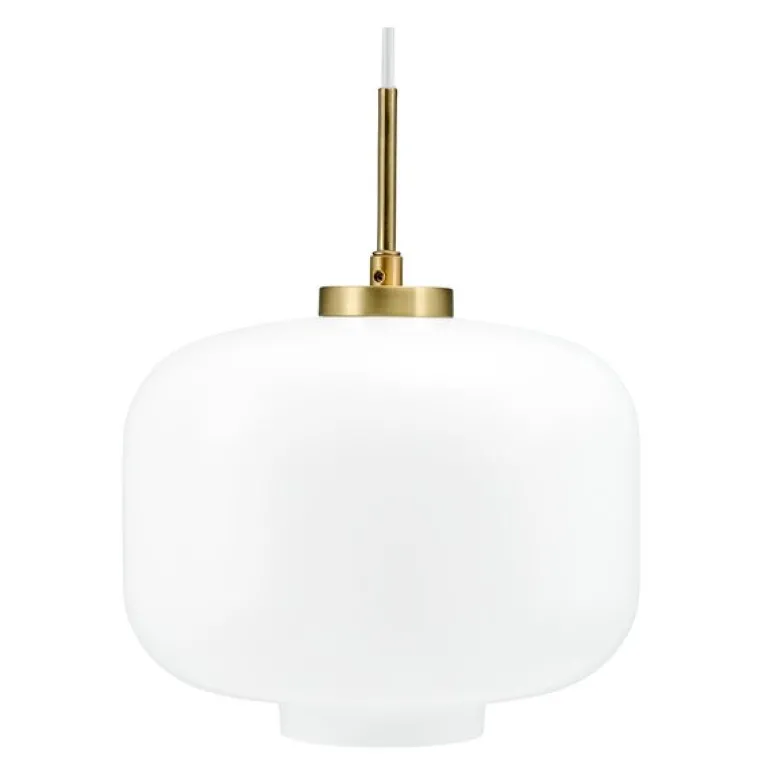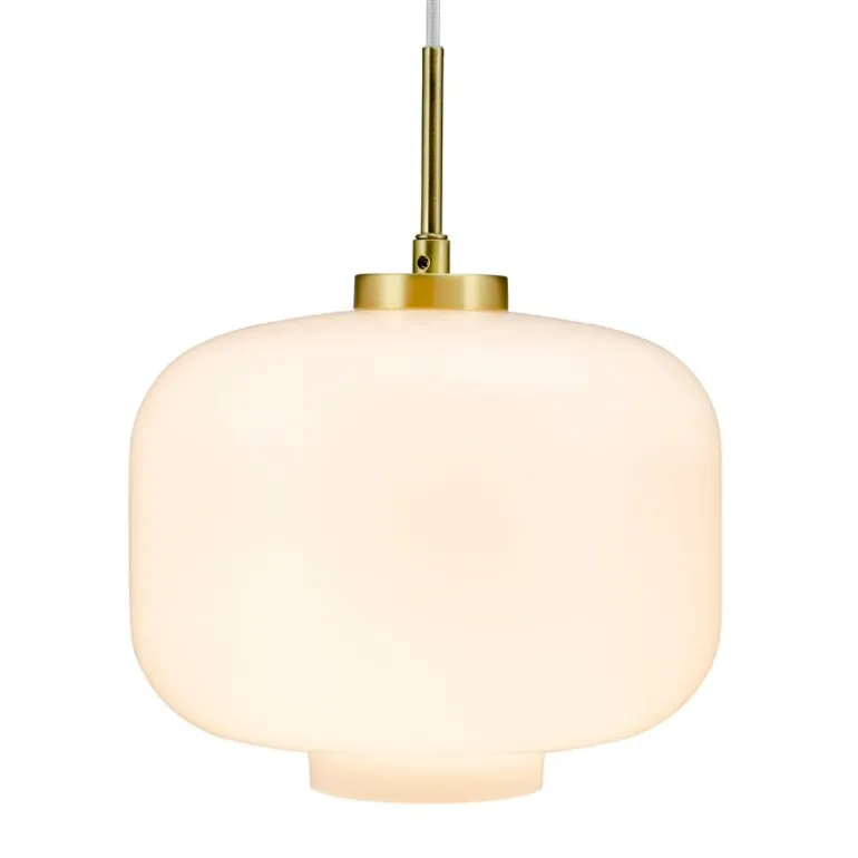 Arp Taklampe Ø30 fra Dyberg Larsen er en elegant pendellampe som kombinerer tidløst design med praktiske detaljer for å passe perfekt i både klassiske og moderne hjem. Skjermen i opalglass kaster et mykt og jevnt lys som skaper en innbydende atmosfære, mens opphenget i messing med en hvit tekstilkabel gir lampen et stilrent uttrykk. Med en diameter på 30 cm og en høyde på 35 cm, passer denne lampen perfekt over spisebordet, i entréen eller som belysning i stuen.