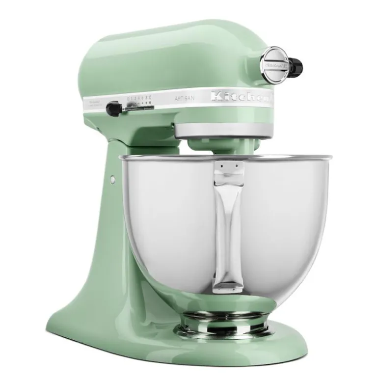 Opplev allsidighet på kjøkkenet med KitchenAid 5KSM125EPT Artisan 4,7L kjøkkenmaskin, i den vakre grønnfargen pistasj. Med sitt avrundede design og vippehode er denne kjøkkenmaskinen en fryd for øyet samtidig som den leverer kraft og ytelse.