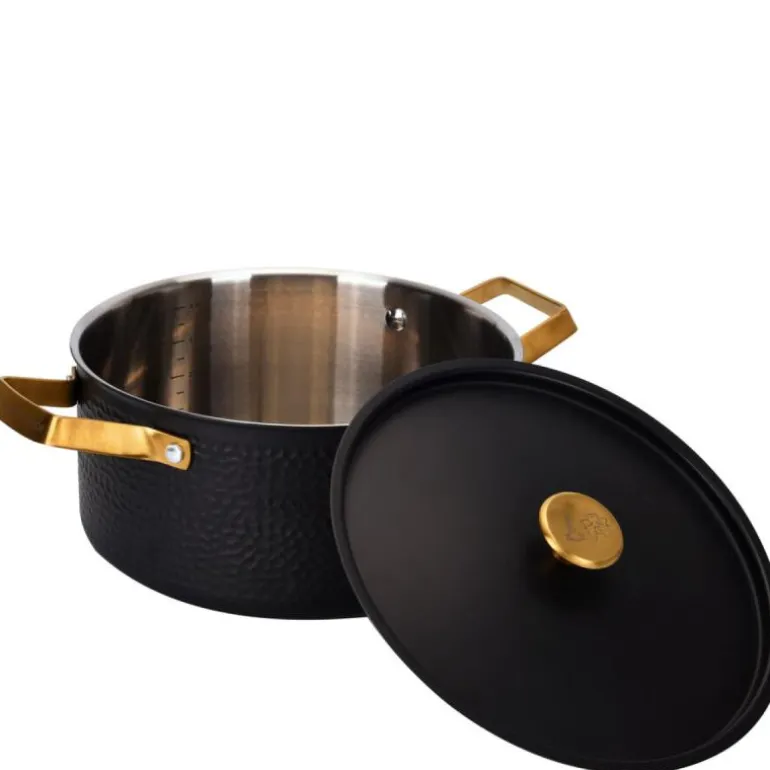 Denne gryten er ikke bare funksjonell, men også et uttrykk for høy kvalitet og eksepsjonelt håndverk. De elegante messingdetaljene gir den et luksuriøst preg, som gjør den til et stilig blikkfang på kjøkkenet ditt. Gjør inntrykk på gjestene dine med ikke bare dine kokkekunster, men også med det vakre designet av gryten som har bidratt til å skape måltidet.