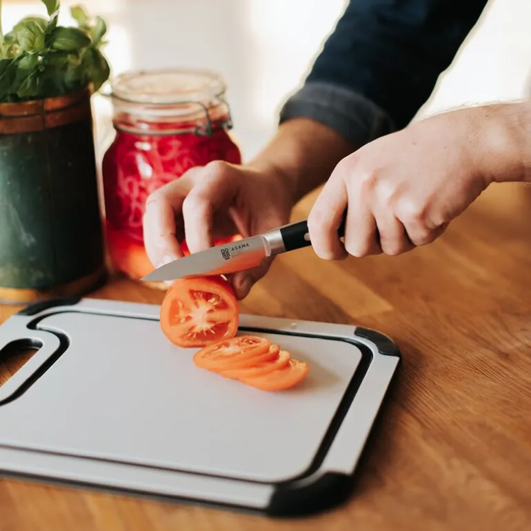 Knivens smidige design gjør det enkelt å jobbe nært råvarene for optimal kontroll. Det ergonomiske håndtaket gir komfort og et sikkert grep under hele arbeidet.