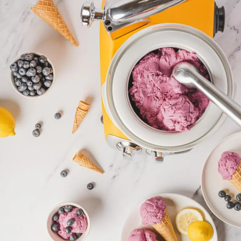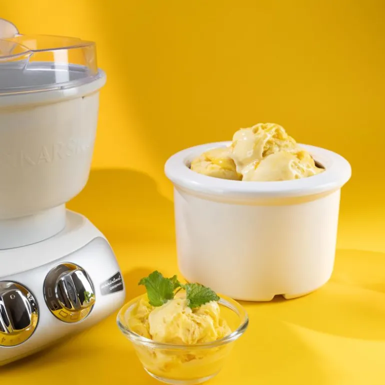 Iskrembolle til din Ankarsrum Assistent Original kjøkkenmaskin. lag inntil 750 gram (ca. 1,5 liter) av din favoritt, enten det er klassisk is, sorbet eller frossen yoghurt. Morsomt å eksperimententere med smaker og farger, her er det bare fantasien som setter grenser.