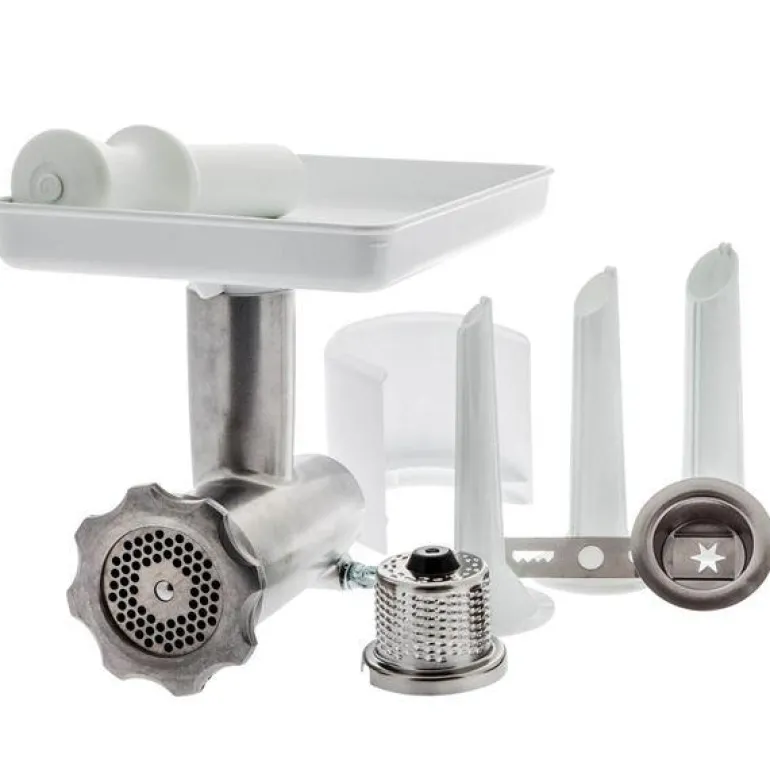 Kakepakke til Ankarsrum kjøkkenmaskin. Denne pakken er laget spesielt for kakebaking og for kransekake! Den leveres komplett med alt nødvendig tilbehør som rivjern og kakesprøyte. Pakken inneholder i tillegg kjøttkvern, matebrett, matepropp, sprutdeksel og pølsehorn. Passer alle modeller (N1-N30).