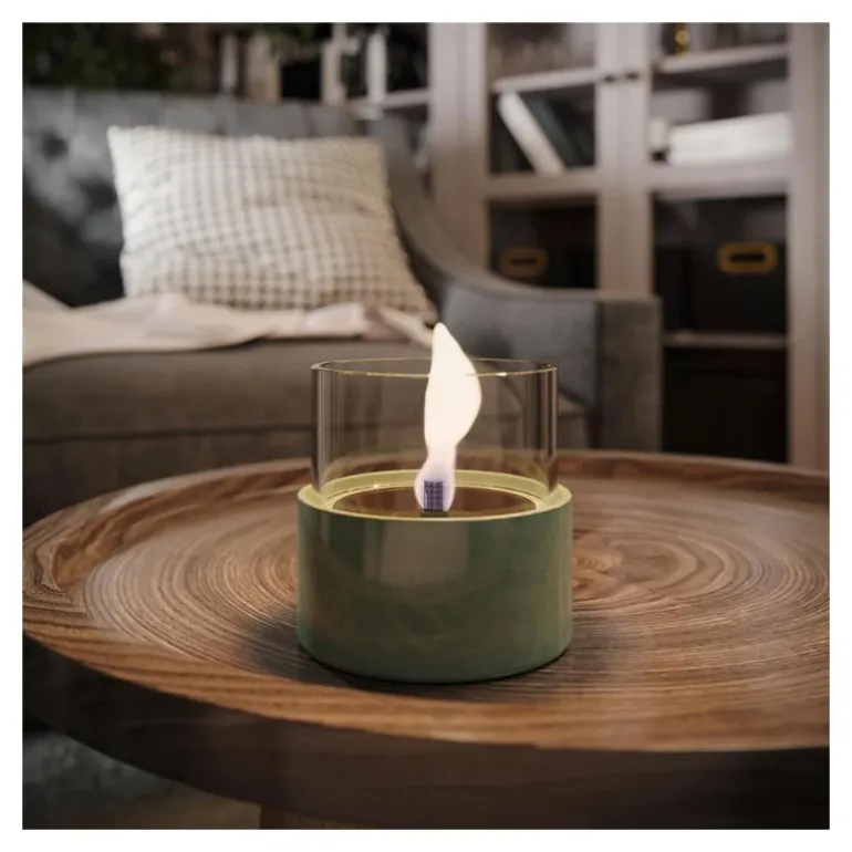En flott og levende flamme i en modell med beskjedene yttermål i porselen med glass som kan settes nesten over alt du måtte ønske. Reactive Glaze gir et moderne uttrykk. Kan også brukes ute. Brenner i ca 4-5 timer. Leveres i flere farger.