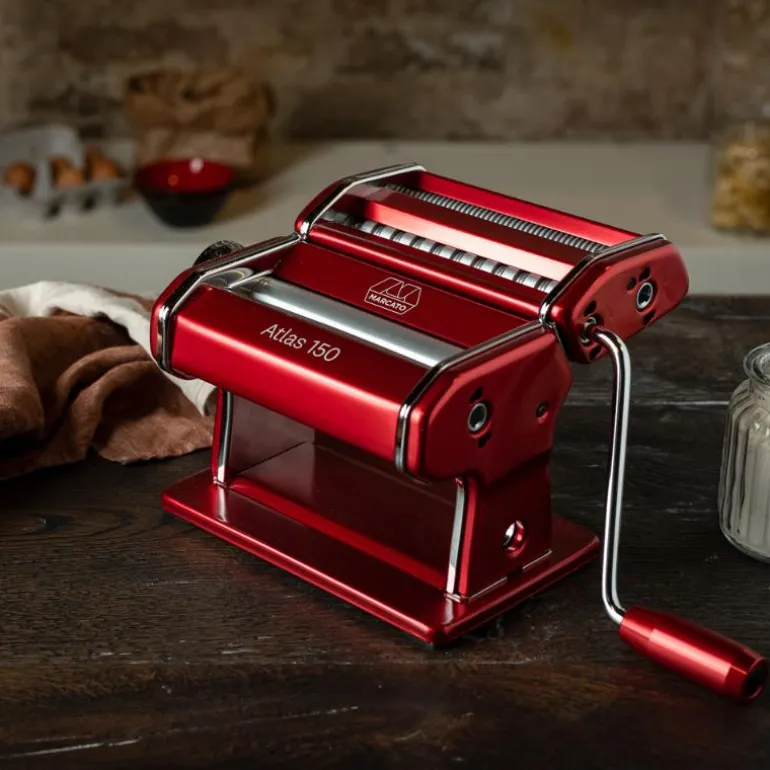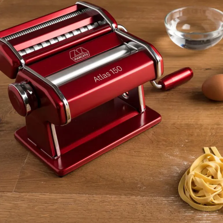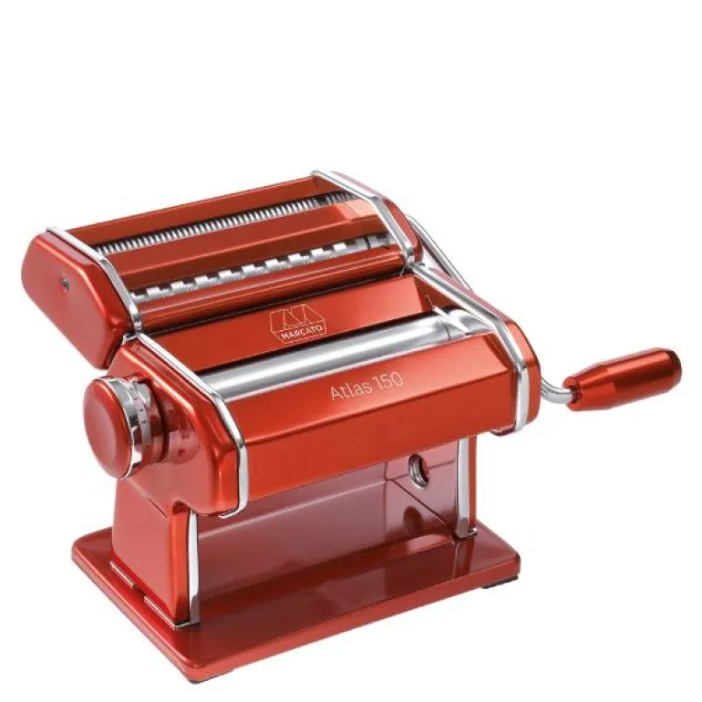Marcatos klassiske pastamaskin med regulerbar tykkelse på lasagneplatene, fra 0,6 til 4,8 mm. Maskinen leveres også med valser til fettuccine (6 mm) og tagliolini (1,5 mm). Maksbredde på lasagneplatene er 15 cm. Bordfeste er inkludert.