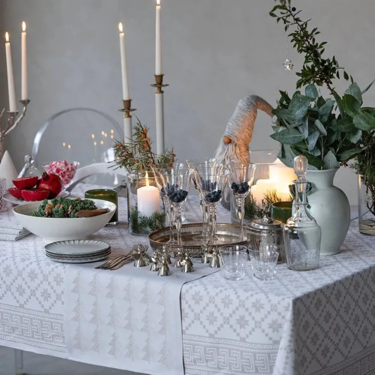 Den romslige størrelsen på 150×200 cm dekker bordet godt, og gir det en mykere og mer innbydende atmosfære. Duken beskytter samtidig mot riper og søl, noe som gjør den til et praktisk valg for både store middager og intime sammenkomster.
