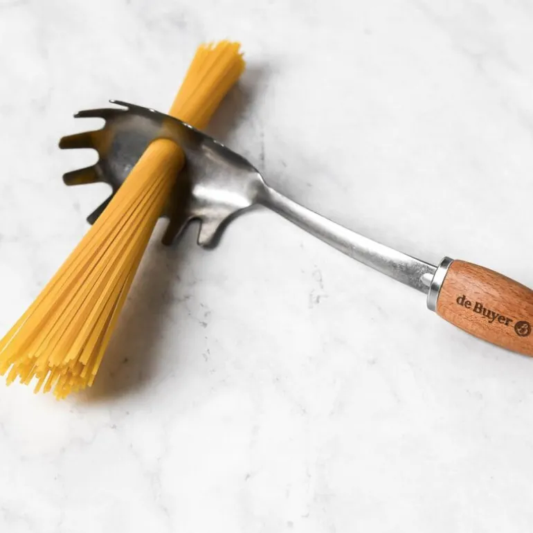 Fullfør din B Bois-samling med den vakre B Bois Spaghettiøse. Som resten av samlingen er også denne slekken laget av solid, stenvasket rustfritt stål som er ment å tåle høye temperaturer. Det naturlige bøkehåndtaket har en bivoksfinish som er behagelig og kjølig å ta på. Med en gaffellignende stil kan du enkelt gripe og løfte spaghetti og pasta fra varme gryter og panner. Designet med et sentralt hull for porsjonering av tørr pasta. Dette elegante kjøkkenredskapet vil legge til stil på komfyren din og gjøre serveringsopplevelsen enda bedre. De Buyer er en anerkjent fransk produsent av kjøkkenutstyr med en stolt historie som strekker seg tilbake til 1830. Grunnlagt i landsbyen Le Val-d’Ajol i Vosges-avdelingen, har selskapet etablert seg som en pålitelig leverandør av høykvalitetsprodukter for matlaging.