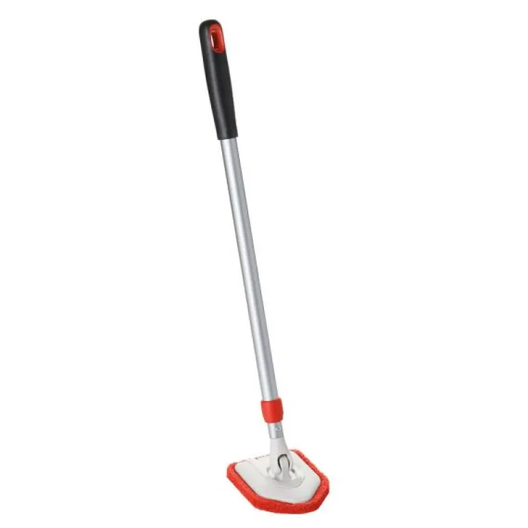 Når badet skal ha den helt store omgangen, har du bruk for en god skrubb som OXOs baderomsskrubb. Skrubben er ideell til badekar, fliser, glassflater og gulv. Teleskophåndtaket, som kan utvides fra 66 cm til 106 cm, er laget av lettvekts stål, og gir deg mulighet for å nå alt fra gulv til tak til veggene lengst vekke i en behagelig, stående stilling. Det antimikrobielle skrubbehodet kan dreies, så du kan gjøre rent i forskjellige vinkler; perfekt til å komme inn i hjørner og rundt toalettet.