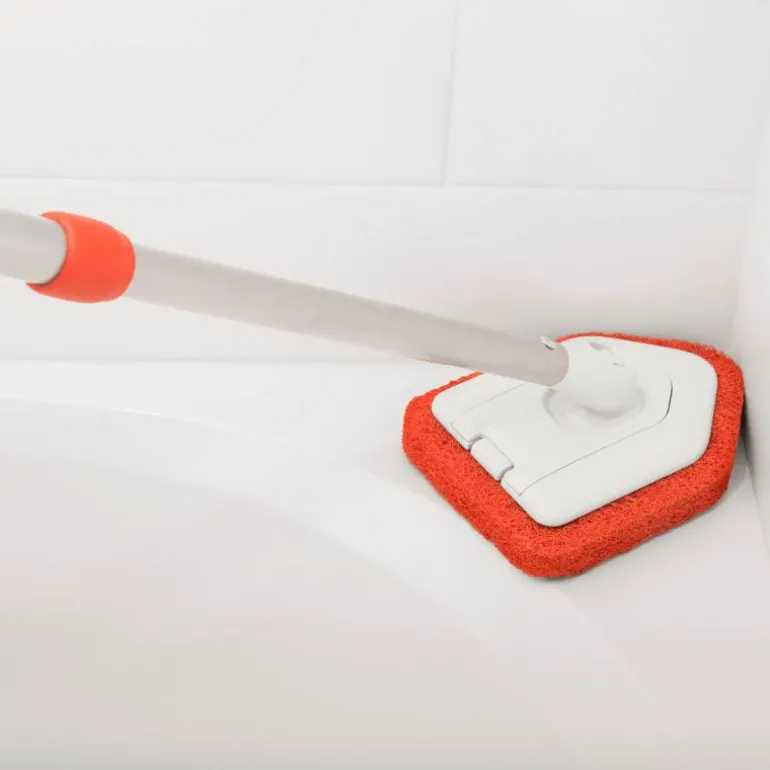 Baderomsskrubb m/teleskophåndtak oransje fra OXO.