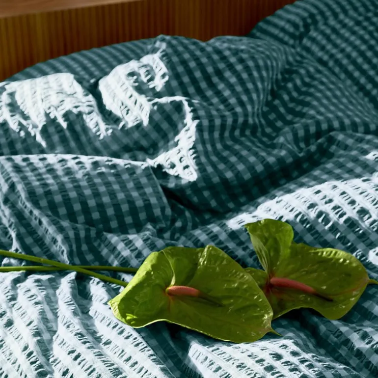 Sanselig, behagelig og 100 % økologisk. Sengetøyet Bæk&Bølge fra JUNA har en helt spesiell veving med en tekstur som vekker minner. Kanskje husker du følelsen av stoffet fra barndommen, besteforeldrene eller sommerferiene på hytta? Ikke bare er det noe nostalgisk over materialet – det er også funksjonelt og lar luften sirkulere mellom huden og stoffet. Det legger til rette for en god natts søvn, slik at du kan hvile og lade opp til en ny dag.