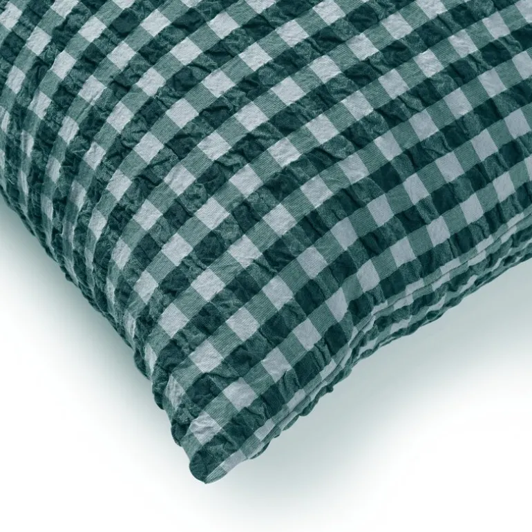 Putetrekket måler 63 x 60 cm og kommer i den drømmende fargekombinasjonen grønn/lyseblå, som er inspirert av det nordiske vinterlandskapets helt spesielle nyanser fra nåletrærnes eviggrønne fargepalett og de isblå tonene i bunnfrosne innsjøer. Har du flere forskjellige Bæk&Bølge-sengesett fra JUNA, kan du leke med å kombinere de ulike fargene og mønstrene på kryss og tvers og skape ditt eget drømmende univers på soverommet, i sofaen, i hengekøyen, på balkongen eller der du ellers måtte ta med deg dynen og puten. Du kan gjøre akkurat det du drømmer om. (GOTS «Organic» Certified by Control Union, CU1026087)