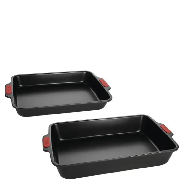 Bakeformer fra Woll 33×23 cm + 38×26 cm i fargen svart/rød. Bakeformene har en jevn varmefordeling og har en lang levetid. Noen ting er så vanskelig å motstå, som lukten av ny kaffe, eller lukten av varm bakst kom igjen, la oss bake!