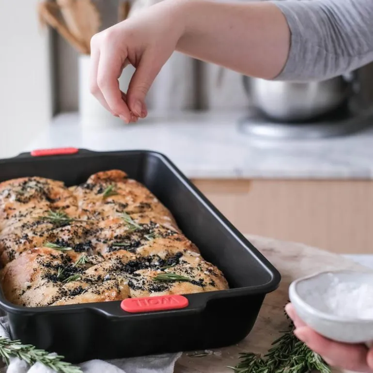 Rektangulær langpanne fra Woll 38 x 25 cm i fargen svart/rød. Langpannen har en jevn varmefordeling og har en lang levetid. Noen ting er så vanskelig å motstå, som lukten av ny kaffe, eller lukten av varm bakst kom igjen, la oss bake!