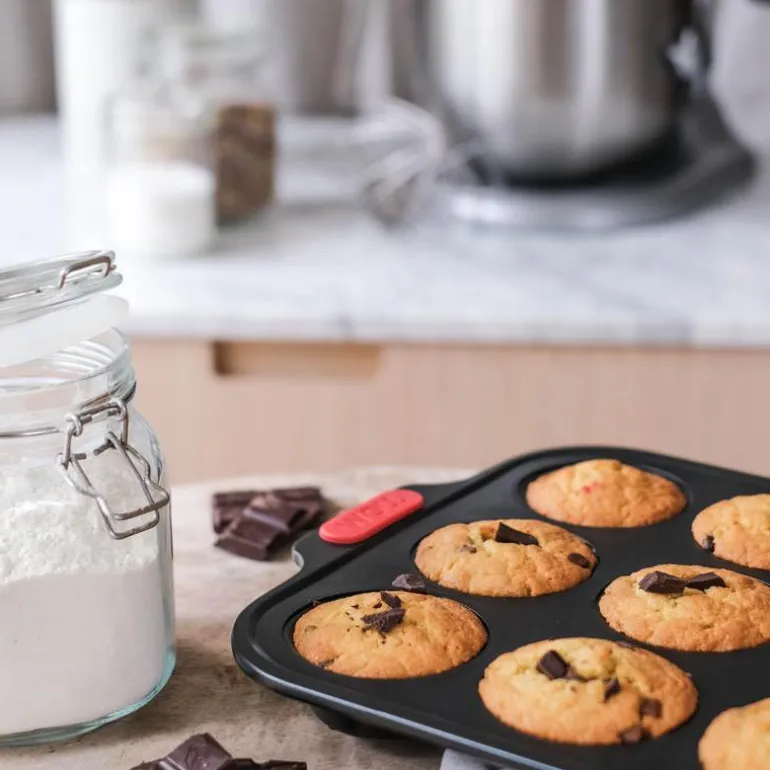 Muffinsform fra Woll 40,5 x 20 cm i fargen svart/rød. Muffinsformen har en jevn varmefordeling og har en lang levetid. Noen ting er så vanskelig å motstå, som lukten av ny kaffe, eller lukten av varm bakst kom igjen, la oss bake!