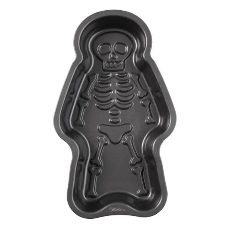 Bak en skummel kake til halloween med denne morsomme skjelettformen.