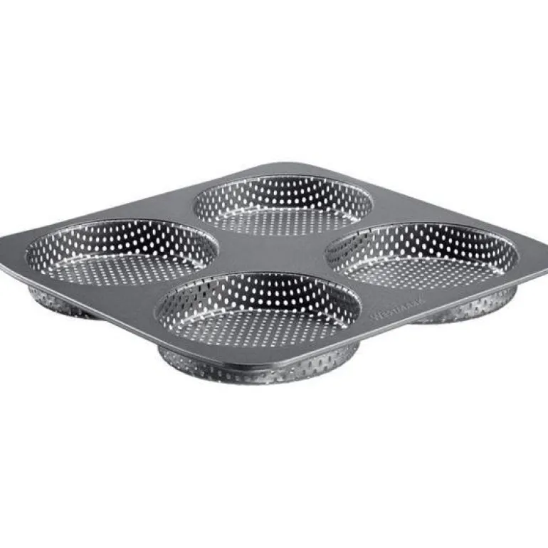 Bakeform for 4 hamburgerbrød på 12 cm i diameter. Non-stick belegget sammen med perforeringen sikrer en jevn fordeling av varme under baking. Stekeformen er laget av tåler og er 28x28x2.5cm.Håndvask anbefales. 5 års garanti.
