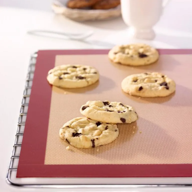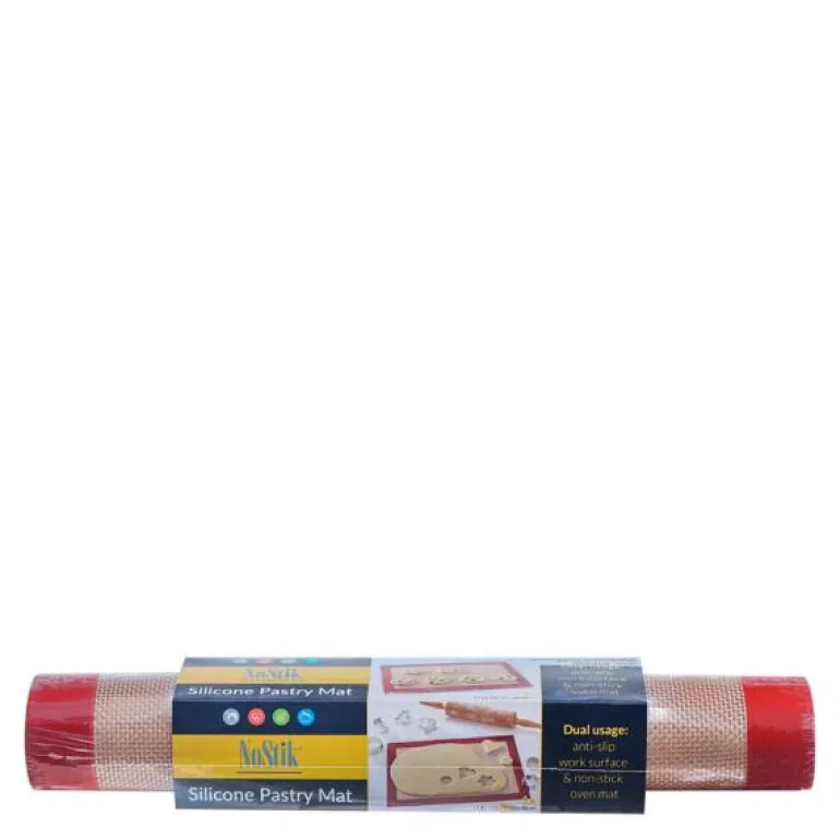 Stor bakematte i silikon som kan brukes på begge sider og gjenbrukes. Lett å vaske, tåler opptil 260 grader og kan også brukes som arbeidsunderlag hvor minimalt med mel og olje trengs for å unngå at bakeemnene fester seg. 38,5 x 58,5 cm. Produseres i Belgia av NoStik. No mess, no stress, NoStik