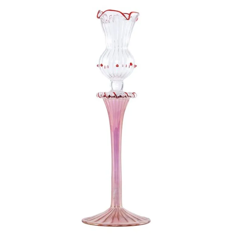 Ballerina lysestake 26 cm rød fra Moonlight Copenhagen er en elegant og grasiøs lysestake som bringer et snev av kunstnerisk skjønnhet inn i hjemmet ditt. Med sin slanke silhuett og delikate rødfarge minner den om en danser i bevegelse, og tilfører et sofistikert og stilfullt uttrykk til enhver innredning. Hver lysestake er munnblåst, noe som gjør at små variasjoner i høyde, utseende og fargetone skaper et unikt preg på hvert enkelt produkt. Denne lysestaken er spesielt designet for kronelys og passer perfekt på spisebordet, i vinduskarmen eller som en del av et dekorativt arrangement i stuen. Moonlight Copenhagen legger stor vekt på kvalitet og tradisjonelt håndverk, og hver Ballerina lysestake er laget med kjærlighet og omtanke for detaljene.