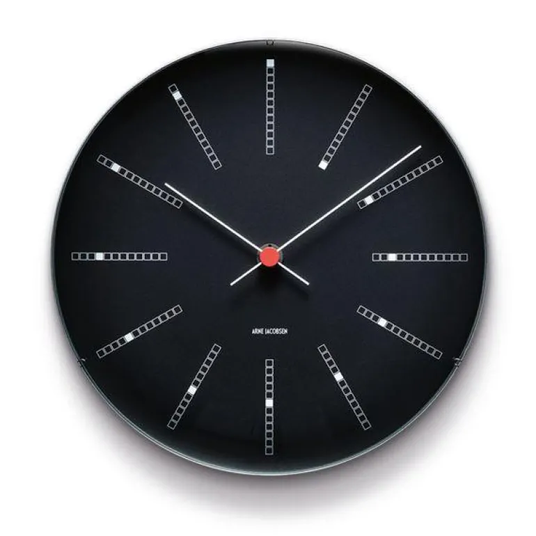 Det stilrene Bankers vegguret i sort fra Arne Jacobsen Clocks måler 21 cm i diameter. Designet er klassisk med en vri av små kreative detaljer, som den elegante spiralen som illustrerer tidens gang rundt hele uret. Bankers-uret ble opprinnelig laget til bruk i Nationalbanken i 1971, men nå kan alle få glede av det minimalistiske designet i sitt eget hjem. Her får du et stilig og tidløst designur med noe eget til innredningen din. Uret fås også i en modell i Ø29.