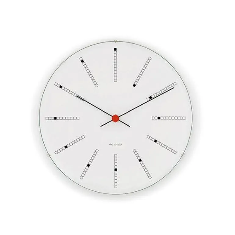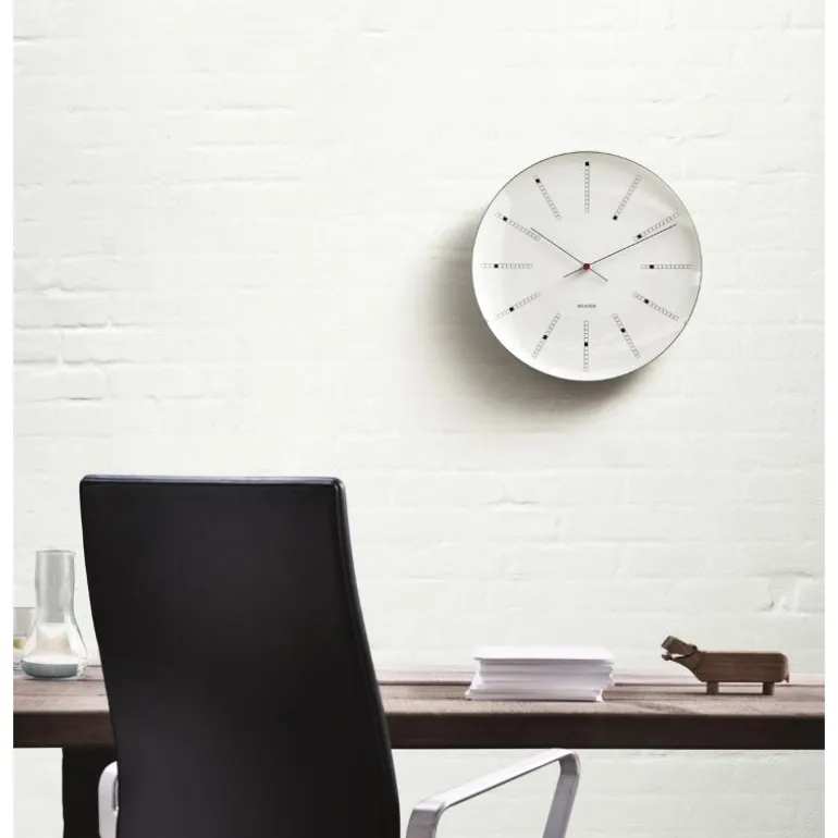 Da Arne Jacobsen skapte veggklokken Bankers Clock til Danmarks Nationalbank i 1971, skapte han samtidig et designikon til boligen. Disse populære Veggklokkene produseres i dag tro mot de originale tegningene, og designet er like aktuelt nå, som da det først ble designet i 1971. Med en stilrenhet og varig design, er dette en ypperlig gave til bryllup, jubilanten eller til en du ønsker å gi en spesiell gave til.