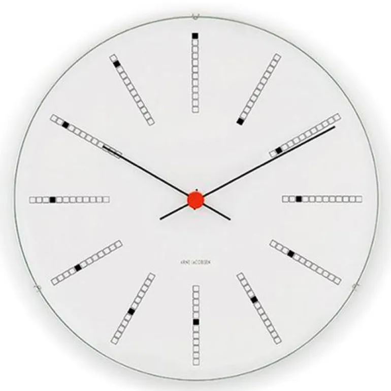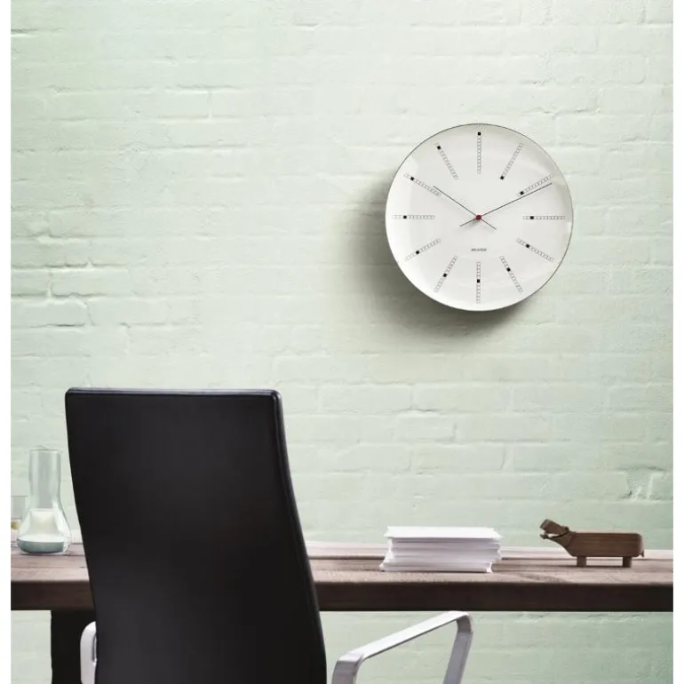 Da Arne Jacobsen skapte veggklokken Bankers Clock til Danmarks Nationalbank i 1971, skapte han samtidig et designikon til boligen. Disse populære Veggklokkene produseres i dag tro mot de originale tegningene, og designet er like aktuelt nå, som da det først ble designet i 1971. Med en stilrenhet og varig design, er dette en ypperlig gave til bryllup, jubilanten eller til en du ønsker å gi en spesiell gave til.