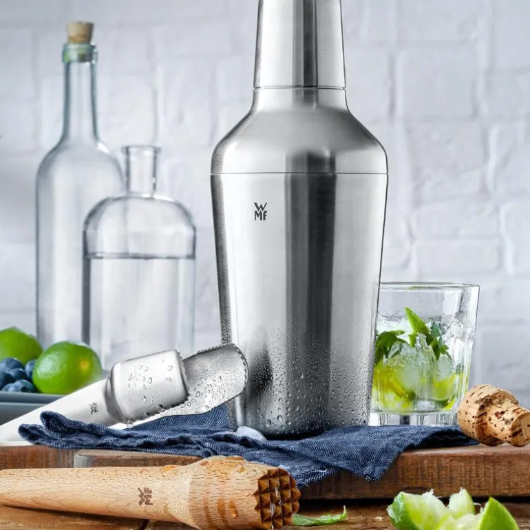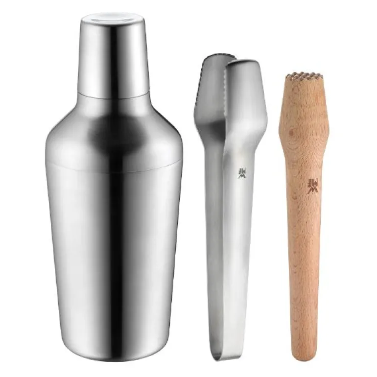 WMF har kalt denne kolleksjonen Matrjoschka, inspirert av de russiske tredukkene med en rekke mindre dukker inni. Akkurat som de små dukkene, kan settets tre deler også stables inni hverandre og dermed spare plass. Nå trenger du ikke lete mer i overfylte skuffer for å finne det du trenger. Med Matrjoschka-barsettet hjemme, kan alltid blande lekre cocktailer – akkurat som en profesjonell bartender. Settet inneholder en elegant og skinnende shaker av Cromargan®. Denne shakeren inneholder dessuten en praktisk sil som holder igjen både is og fruktbiter, samt et målebeger i lukkingen som kan måle 2 og 4 cl. Prikken over i-en er den smarte istangen og en isknuser som brukes etter at shakeren har gjort jobben sin.
