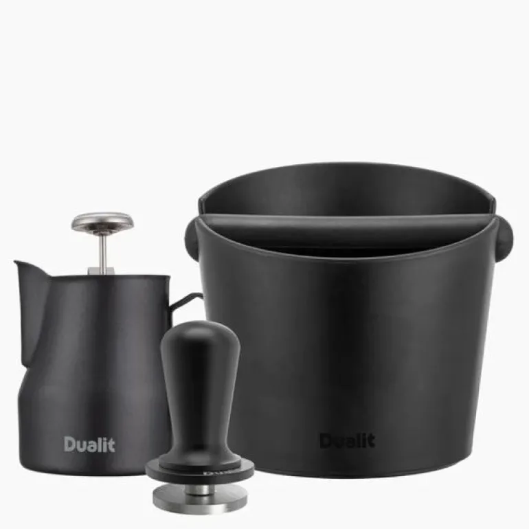 Barista kit 3 deler svart, fra Dualit. Det 3-delte Barista-settet fra Dualit tilbyr alle verktøyene du trenger for å lage kaffe i kafékvalitet hjemme.