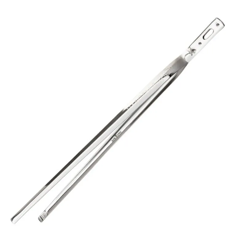 Med sin solide konstruksjon av rustfritt stål, uten noen plastdeler, sikrer Bas pinsett både lang holdbarhet og pålitelig ytelse. Den er utformet for å gi et komfortabelt grep for hånden, slik at du kan håndtere alt fra delikate ingredienser til tykke kjøttstykker med nøyaktighet og sikkerhet. Den maksimale åpningen på 6 cm gir nok bredde til å håndtere et bredt spekter av matvarer.