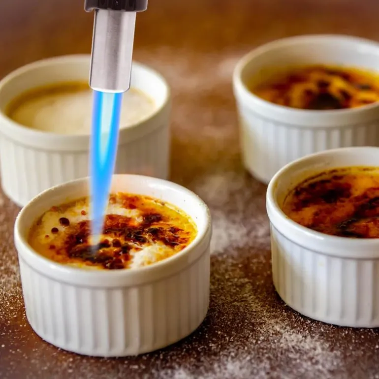 Ypperlig til karamelisering av sukker, marengs, paier og puddinger der du ønsker en flambert overflate. Kan også brukes på ribbesvor og på sushi.