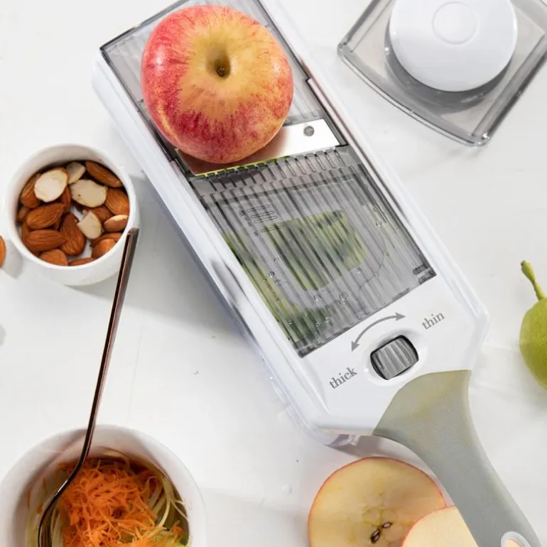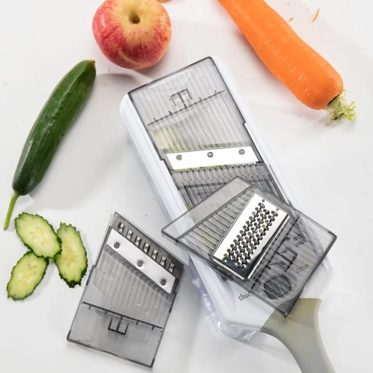 Med et mandolinjern kan du kutte, rive og skive alle typer frukt og grønnsaker. Perfekt når du skal lage egne pommes frites og når du skal lage friske salater. Med justerbar tykkelse på knivbladet, kan du skive både tynne og tykke skiver opp til 5 mm.