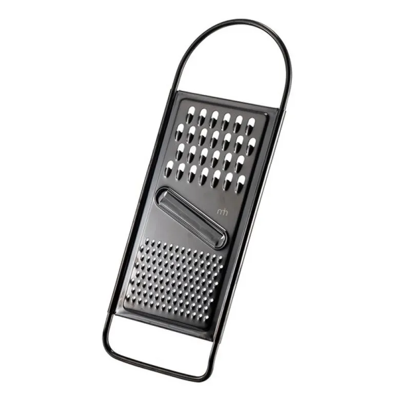Basis rivjern 30 cm børstet, laget av rustfritt stål 18/8, noe som sikrer holdbarhet og lang levetid. Det er ideelt for rasping av frukt, grønnsaker, hard ost, sjokolade og mye mer. Rivjernet har tre ulike bladvarianter på samme raspebrett: fin rasp, grov rasp og høvel. Dette gjør det allsidig og praktisk for en rekke oppgaver på kjøkkenet. Etter bruk kan rivjernet enkelt rengjøres i oppvaskmaskinen, noe som sparer tid og sikrer grundig rengjøring.