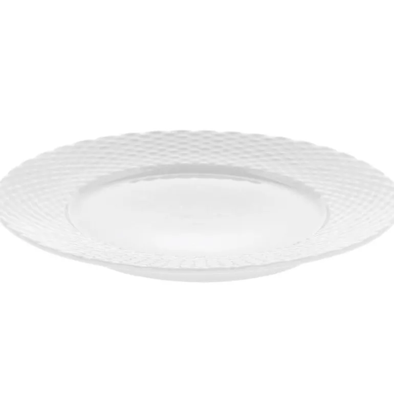 Basket tallerken 22 cm hvit, fra Pillivuyt. Porselensserien Basket er sprøtt, hvitt porselen med elegant dekorasjon, utført som en subtil, detaljert vev, inspirert av klassisk kurvefletting. Basket gir liv til den daglige borddekkingen, samtidig som det er elegant nok til livets spesielle anledninger.