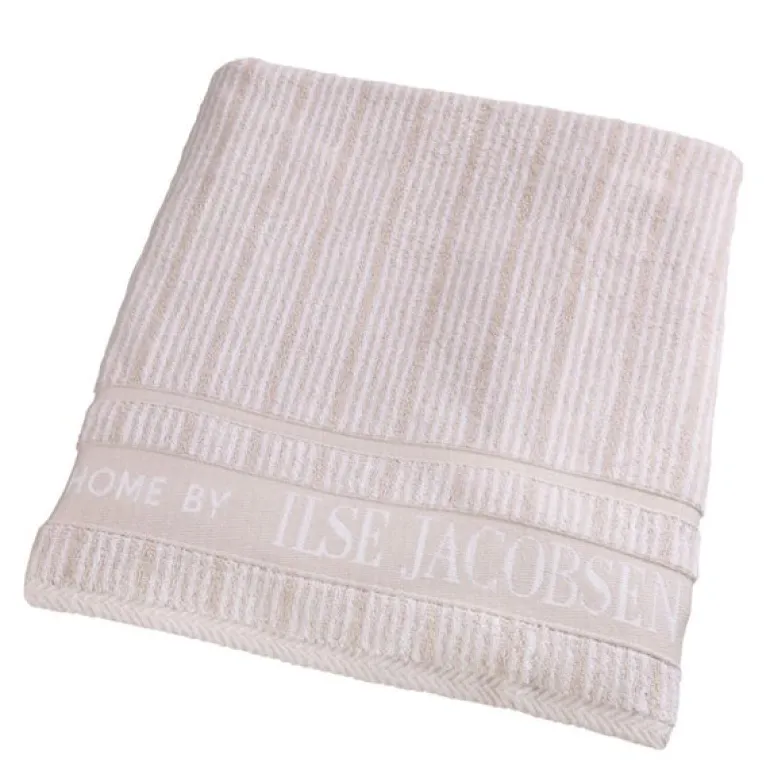 Oppgrader baderomsopplevelsen din med Bath Collection sand beige stripes badehåndkle fra Home by Ilse Jacobsen. Med målene 70×140 cm er håndkleet stort nok til å dekke behovene dine, samtidig som det er lett å bruke og praktisk til daglig bruk. Laget av 100 % bomull, er det både slitesterkt og luksuriøst mykt. Den overlegne absorberingsevnen sørger for at du raskt tørker etter en dusj, mens det hurtigtørkende materialet gjør håndkleet klart til bruk igjen på kort tid.
