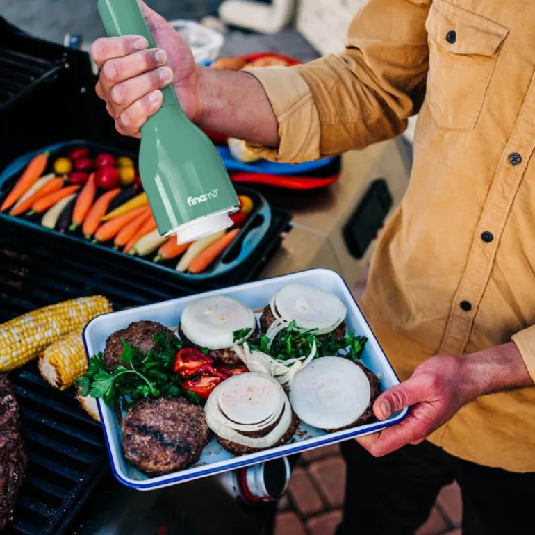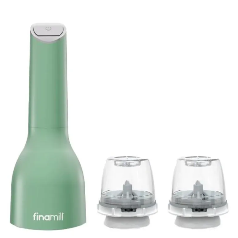 FinaMill batteridrevet krydderkvern med to FinaPod pro plus i fargen sage.