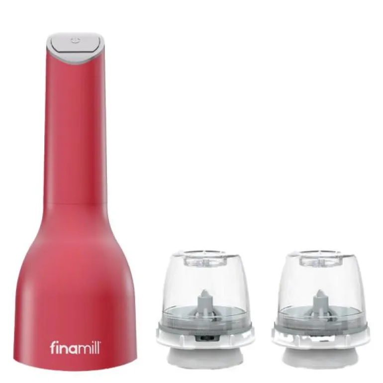 FinaMill batteridrevet krydderkvern med to FinaPod pro plus i fargen sangria.