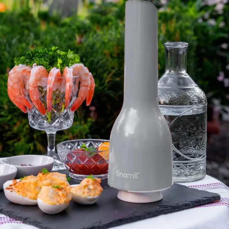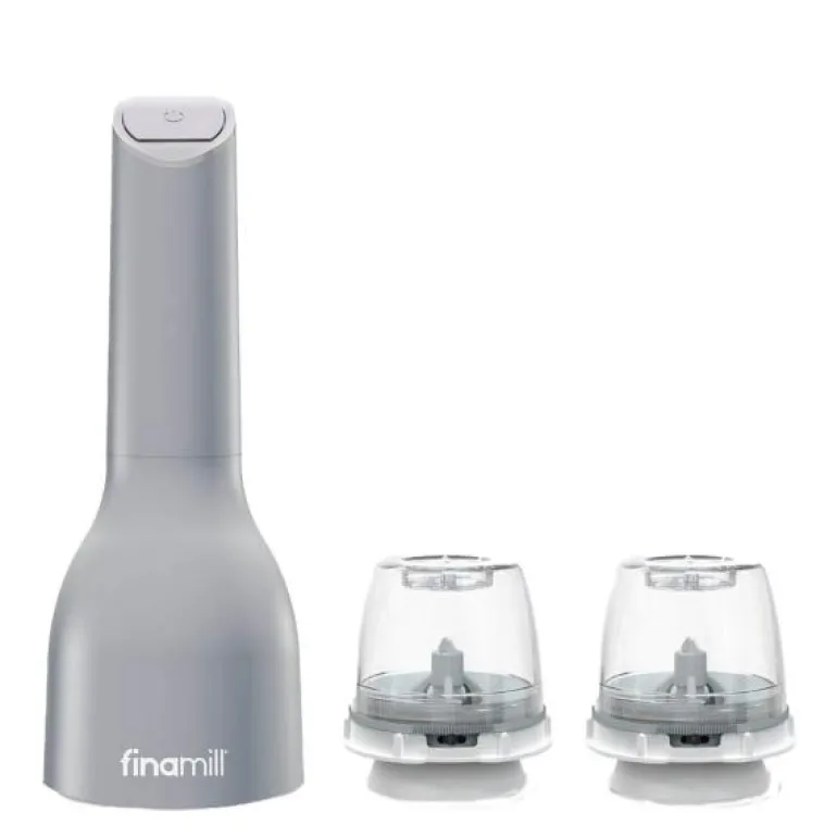 FinaMill batteridrevet krydderkvern med to FinaPod pro plus i fargen stone.