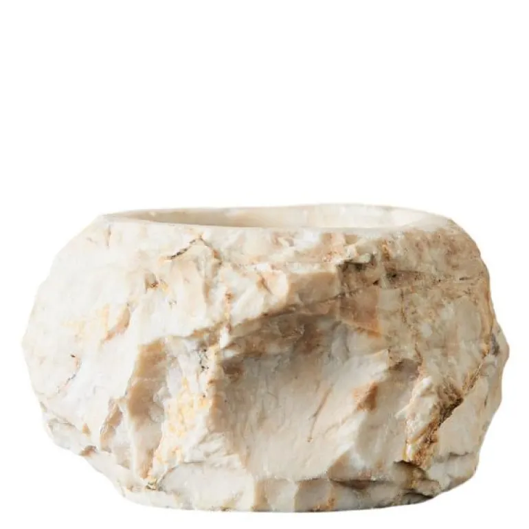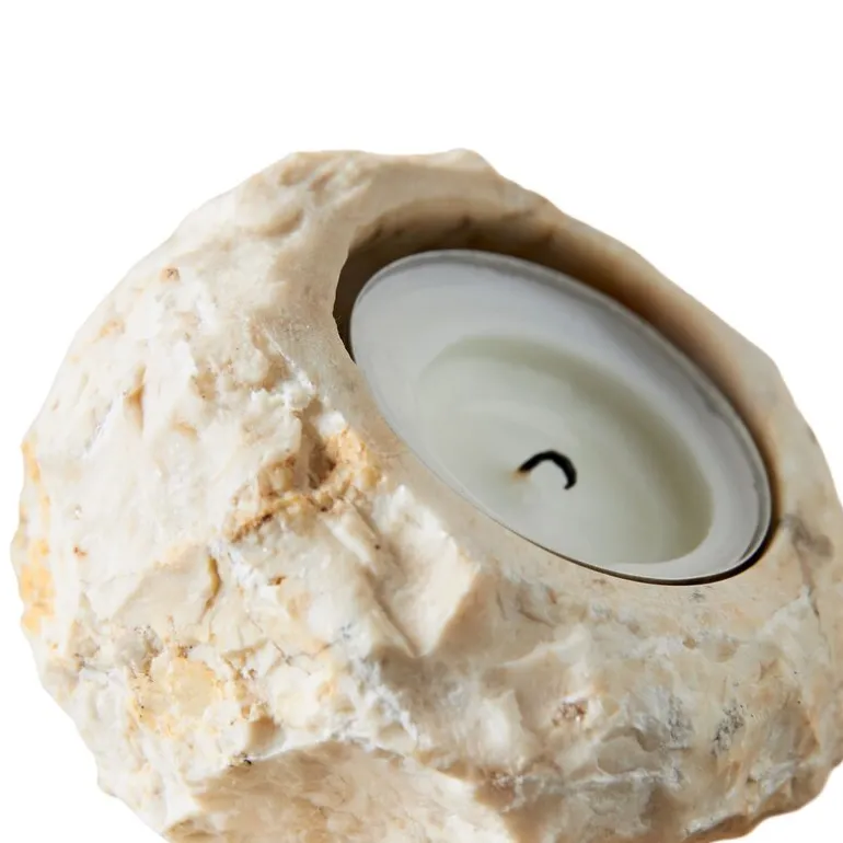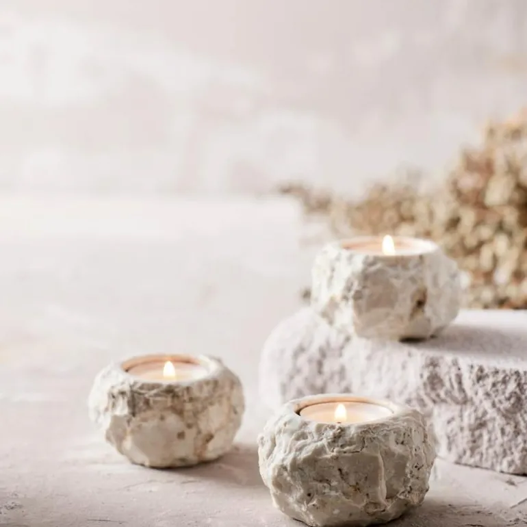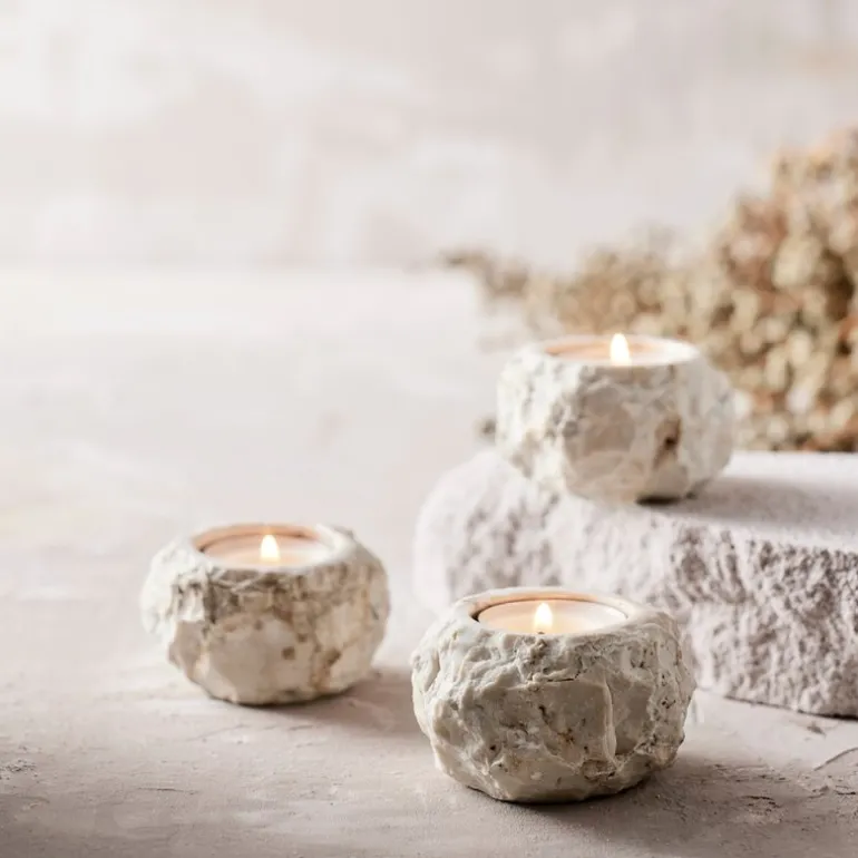 Hver telysstake har sitt eget unike uttrykk i form og farge avhengig av nyansene til den naturlige marmorsteinen.