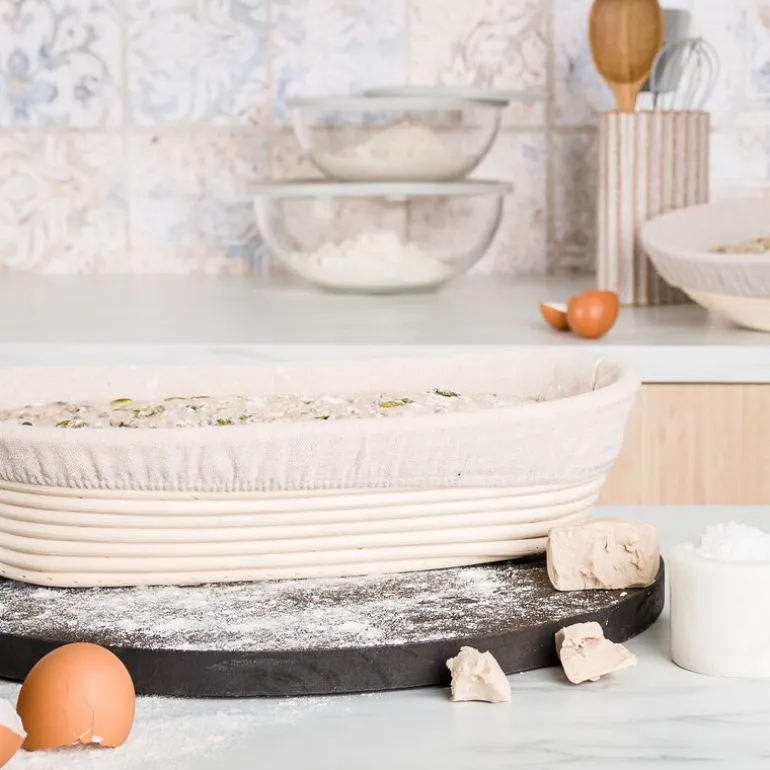 Med hevekurven fra bAYk kan du enkelt lage ovale, luftige surdeigsbrød med sprø skorpe. Hevekurven måler 35 cm i lengden, 17 cm i bredden og 8 cm i høyden, og er designet for å holde deigens form under heving, slik at du unngår flate og tørre brød. Den er laget av rotting i A-kvalitet, nøye utvalgt og håndpolert i Indonesia for å sikre en jevn overflate uten fliser. Kurven er solid montert med rustfrie nagler for langvarig holdbarhet.