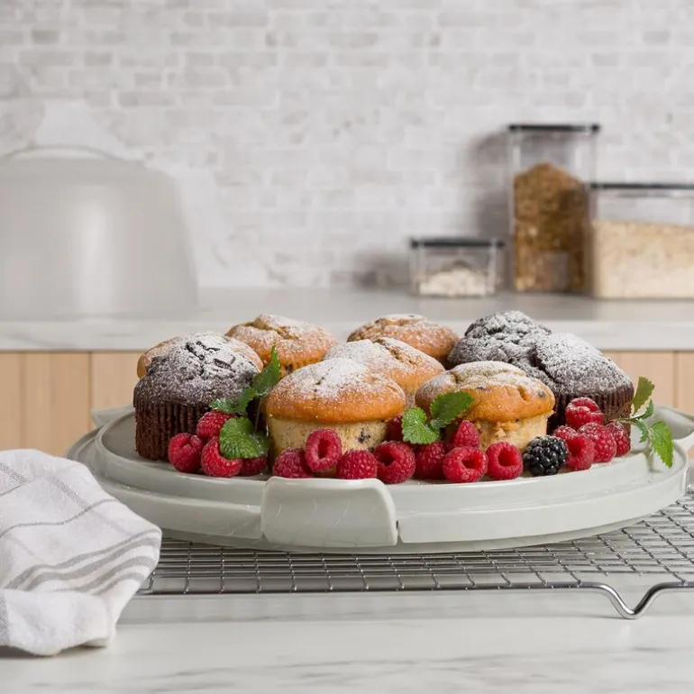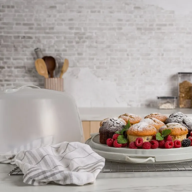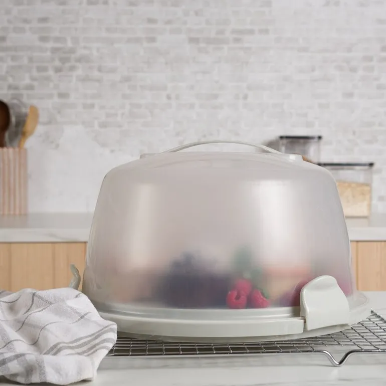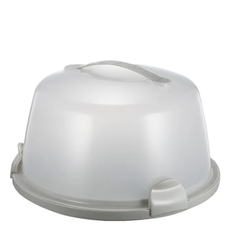 Beskytt bakevarene dine med bAYk kaketine 35 cm i en stilig grå farge fra Modern House. Denne romslige kakeoppbevaringen er laget av slitesterkt PP-materiale og utstyrt med et komfortabelt håndtak for enkel bæring. Sikre klips holder lokket på plass, noe som gjør det perfekt for både oppbevaring og transport av favorittbakevarene dine. Enkel å rengjøre – legg den i oppvaskmaskinen for rask og praktisk rengjøring.