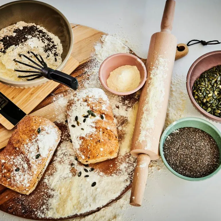 - Kjevlen skal rengjøres for hånd med en fuktig klut etter melrester er børstet av. Om denutsettes for vaskemakin eller bløtlegging, kan kjevlen sprekke. Smør gjerne kjevlen medlitt matolje for å bevare produktets levetid.