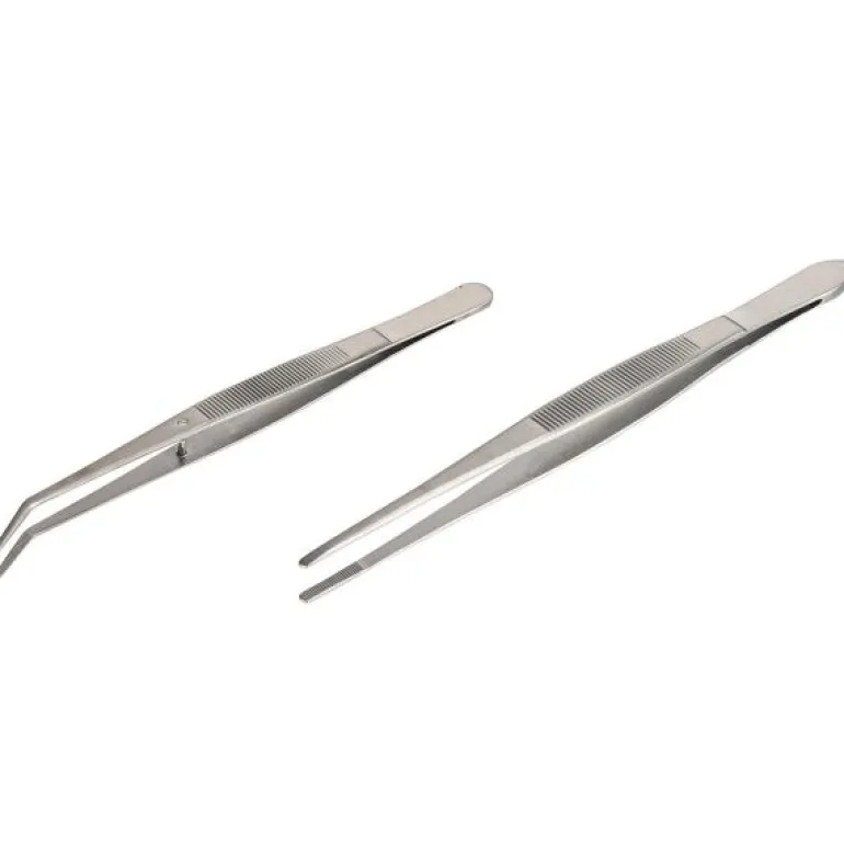 En smal pinsett med godt grep, og en med buede kanter som gjør det lett å arbeide på trange steder.