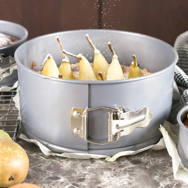 bAYk springform i 22 cm sølv fra Modern House er et førsteklasses valg for alle bakeentusiaster. Denne bakeformen utmerker seg med spesifikasjoner som overgår det meste på markedet. Den tåler temperaturer opp til 250°C og kan trygt oppbevares i fryseren, noe som gjør den ekstremt allsidig i bruk. Laget av 0,8 mm karbonstål, sikrer denne formen en jevn varmefordeling som gir perfekte bakevarer hver gang. Det slitesterke Weilburger 1500 slipp-lett belegget sørger for at kaker og andre bakverk slipper lett fra formen, samtidig som det har en lang levetid.
