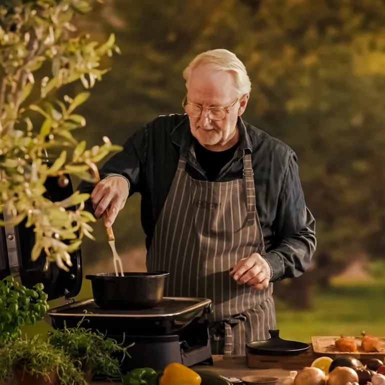 BBQ by Hellstrøm forskjærgaffel er utviklet for deg som vil ha full kontroll på kjøttet under grilling og servering. Denne gaffelen, en del av den eksklusive BBQ-serien utviklet i samarbeid med Eyvind Hellstrøm, er laget for å gjøre håndtering av kjøtt enklere, sikrere og mer presis – perfekt både til grilling og skjæring av store kjøttstykker.