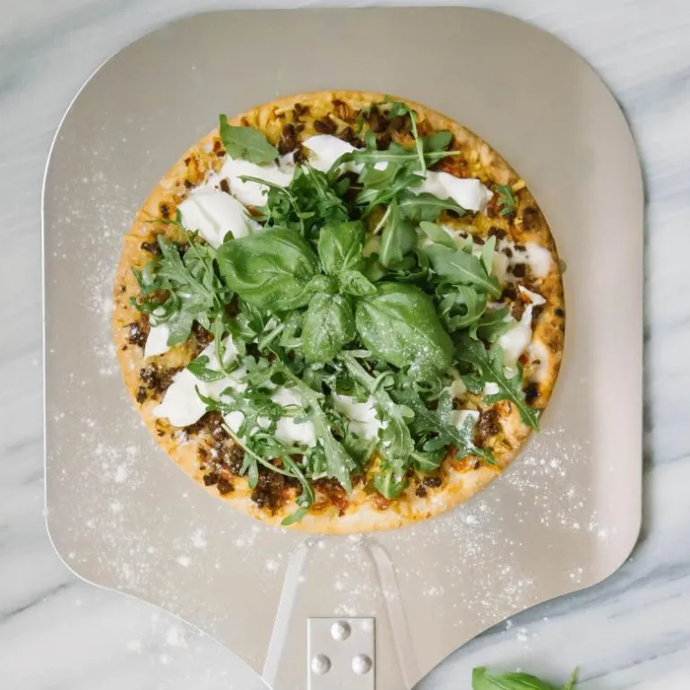 BBQ pizzaspade med trehåndtak vil hjelpe deg å lykkes med pizzabaking hjemme. Med pizzaspaden får du perfekt pizza hver gang og kan enkelt skyve den inn i ovnen.