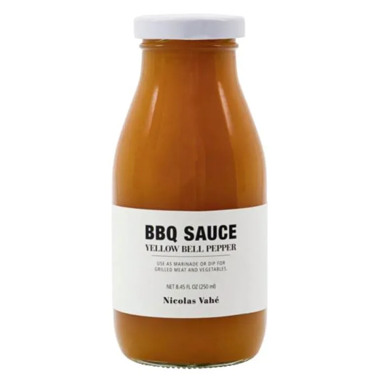 Den perfekte smaken av grill med den deilige BBQ-sausen med gul paprika! Denne sausen på 250 ml er laget med hele 53% gul peberfrugtpuré, noe som gir en herlig søt og røykfylt smak som hever opplevelsen av både grillede grønnsaker, kjøtt, kylling og fisk.